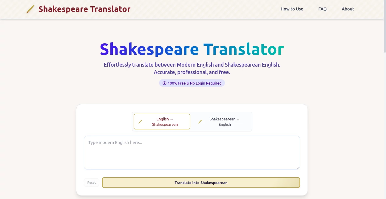 professional AI-powered tool for seamless translation between Modern English and authentic Shakespearean English.